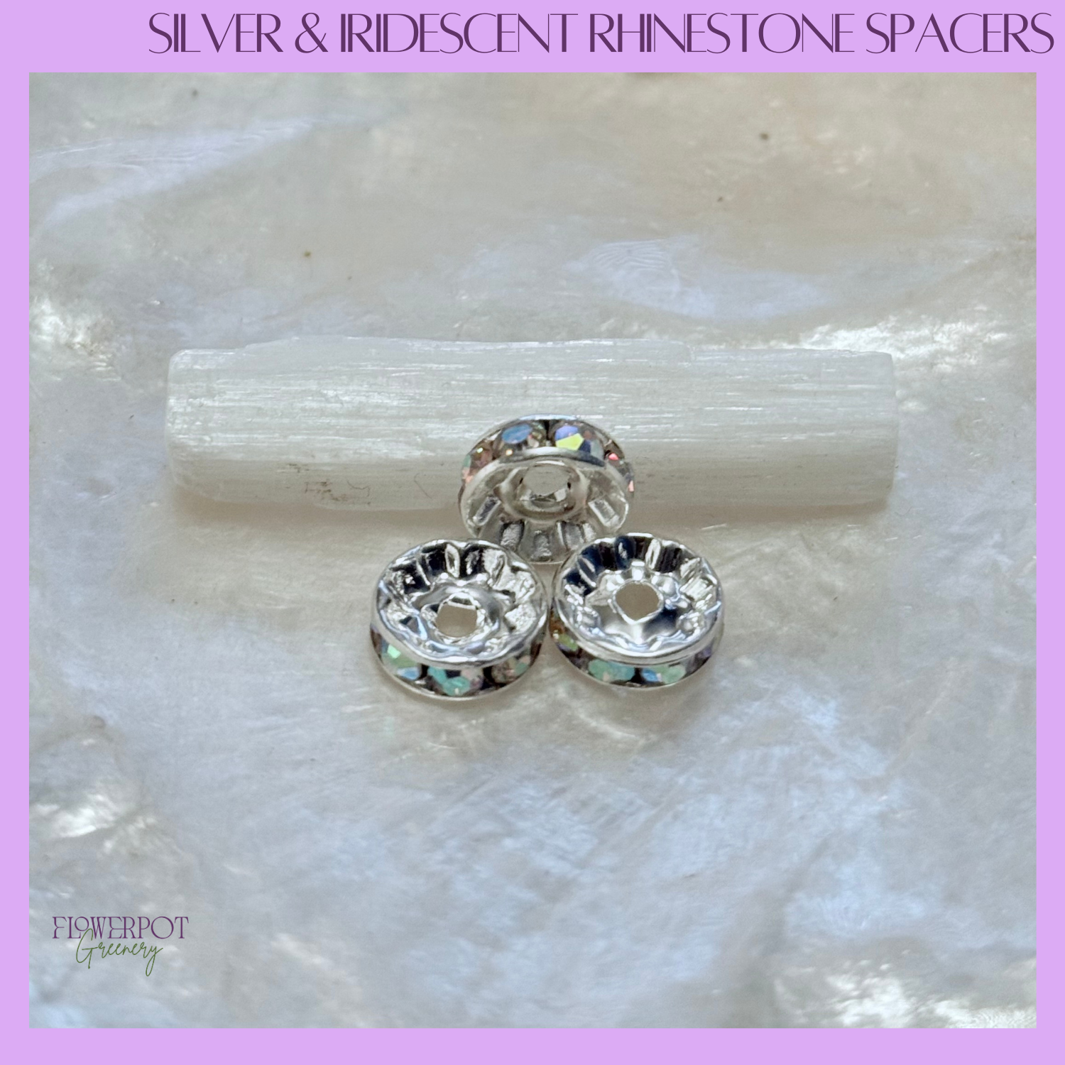Turn every drink into a statement piece. To personalize your assortment of Amethyst, Black Obsidian, Green Aventurine, and Rose Quartz crystal cocktail picks, select the accent piece of your choice: 1) Silver Square Spacer; 2) Silver Round Spacer; 3) Clear Rhinestone Spacer; OR 4) Iridescent Rhinestone Spacer.
